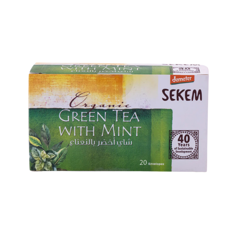 Sekem organic green tea with mint Made with the best teas from SEKEM, a holistic and sustainable biodynamic agricultural development in Egypt. Enjoy the refreshing and invigorating cup of Sekem Green Tea with Mint Herbs. It combines the subtle aroma and natural taste of mint that refreshes your senses.